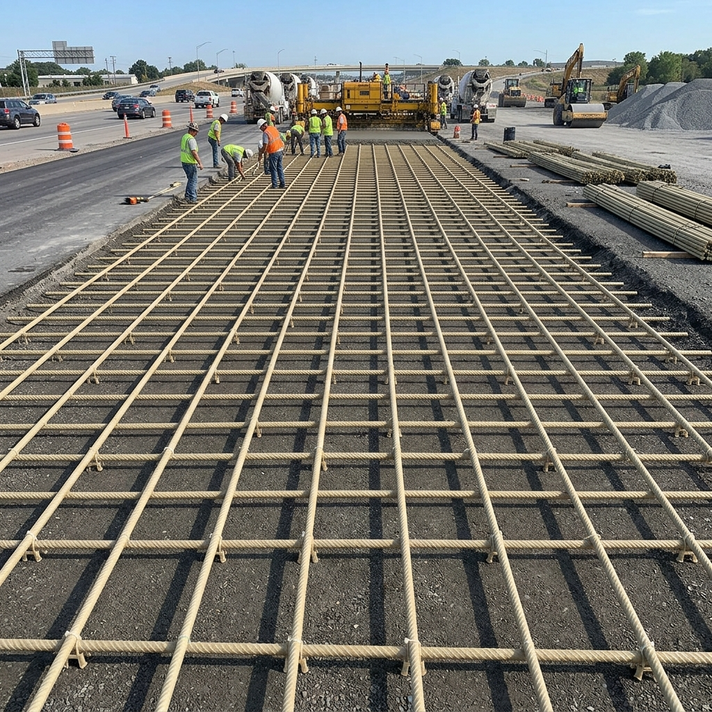 - 철근 대비 1/4 경량화로 취급과 근로자 작업 편의성, 안정성 증대로 공사 비용 절감 효과