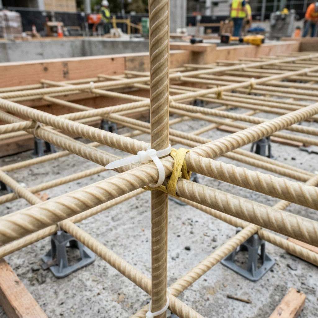 📢 철근의 원형 단면과 나선형 리브에 플라스틱/섬유 결속재를 사용한 유리섬유 복합철근 에코넴 리바입니다. 철근이 들어가는 곳이라면 어디든 사용하면 좋은 기능성 건축자재.